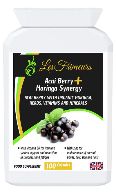 Les Frimeurs Acai Berry + Moringa Synergy is a powerful blend of two superfoods, Acai Berry and Moringa, designed to promote overall health and well-being. This synergistic formula is packed with antioxidants, vitamins, and minerals that support immune function, energy production, and healthy aging. Discover the benefits of Les Frimeurs Acai Berry + Moringa Synergy today and feel your best from the inside out! Take control of your health with the natural goodness of Acai Berry and Moringa. Enjoy increased energy, better focus, and improved immunity with this powerful combination of essential vitamins, minerals, and antioxidants.