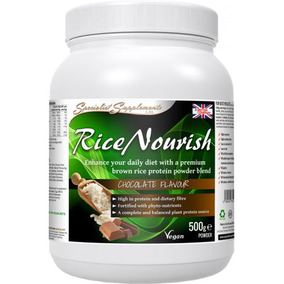 RiceNourish (Chocolate Flavour) is a vegan protein powder blend that offers, not only high levels of complete and balanced plant protein, but also dietary fibre and herbs.